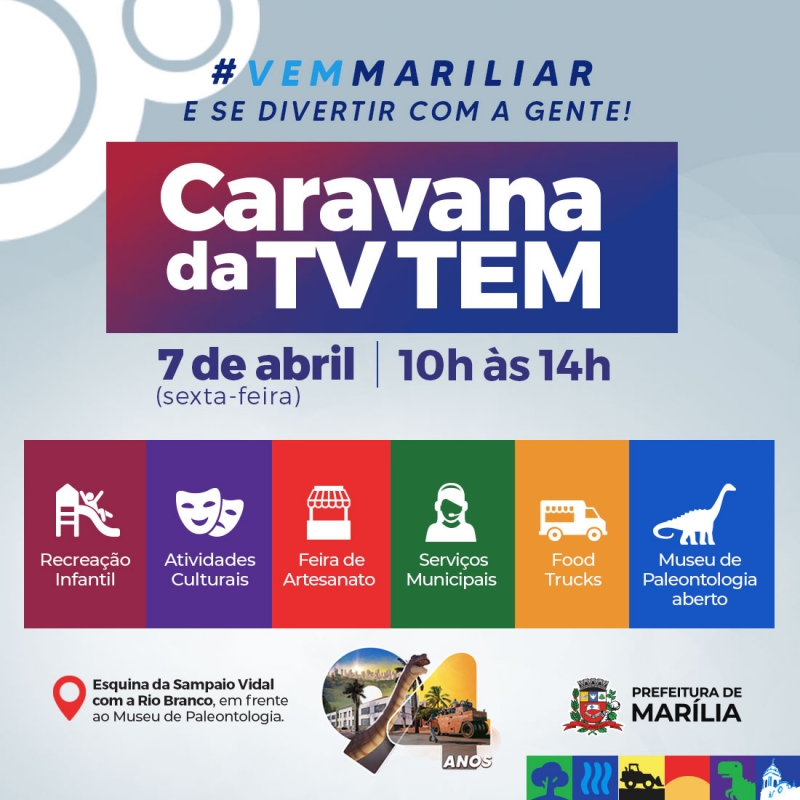 Está chegando em Marília a Caravana da TV TEM, evento em parceria com a Prefeitura, que faz parte da programação especial dos 94 anos da cidade.