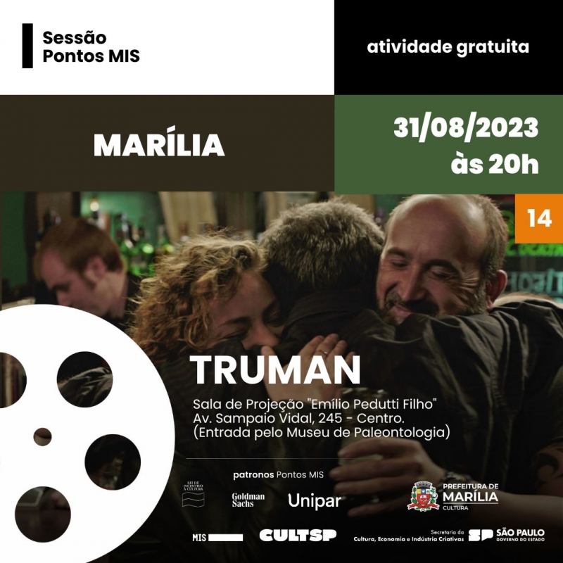 A Secretaria da Cultura realizará na próxima quinta-feira, 31 de agosto, a exibição do filme “Truman”, às 20h.