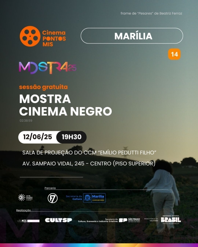 A Secretaria da Cultura de Marília, em parceria com Museu da Imagem e do Som - Pontos MIS, realizará nesta quinta, 12 de junho, à partir das 19h30, a Mostra de Cinema Negro, integrando a programação de Mostra Livre de Cinema 2025.