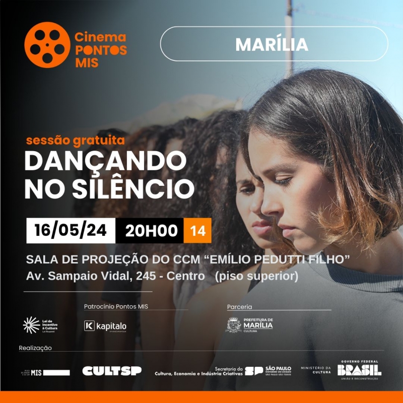 A Secretaria Municipal de Cultura de Marília, em parceria com o Museu da Imagem e do Som, através do Pontos MIS, exibe nesta quinta-feira, dia 16 de maio, às 20 horas, o filme Dançando no Silêncio, dirigido pela franco-argelina Mounia Meddour.