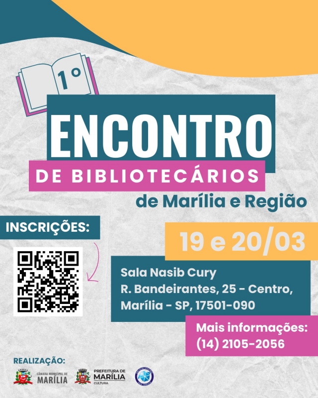 A Biblioteca da Câmara de Marília, em colaboração com a Secretaria de Cultura de Marília e o Curso de Biblioteconomia da Unesp Marília, anuncia o I Encontro de Bibliotecários de Marília e Região, programado para os dias 19 e 20 de março de 2024.
