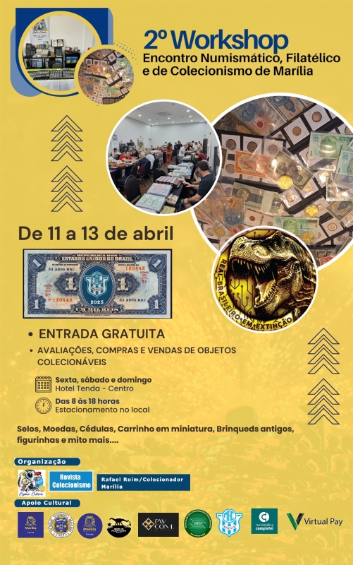 Mais uma vez Marília e região entrarão nesse circuito com a exposição, venda e troca de materiais colecionáveis. A novidade deste ano é que a Numismática Completei, de Taboão da Serra, em conjunto com as Secretarias da Cultura e do Trabalho, Turismo e Desenvolvimento Econômico, homenagearão o Museu Paleontológico com o lançamento de uma peça numismática muito bem confeccionada.