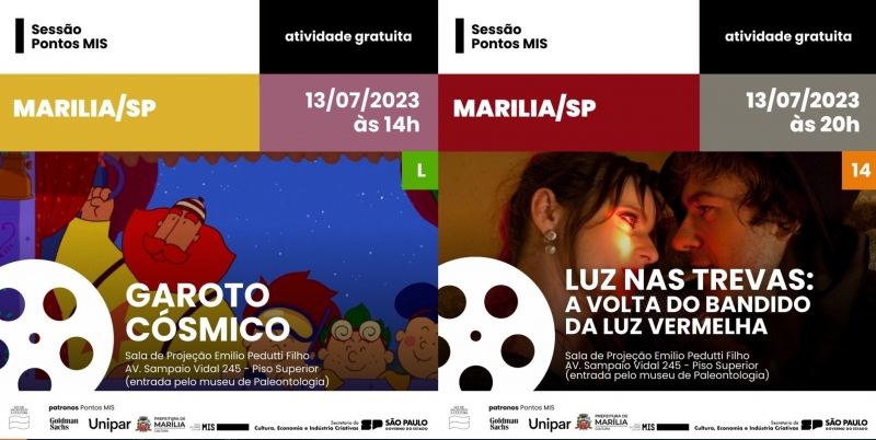 A sessão de cinema é promovida pelo Museu da Imagem e do Som, através dos Pontos MIS – programa de difusão audiovisual, em parceria com a Secretaria da Cultura de Marília.