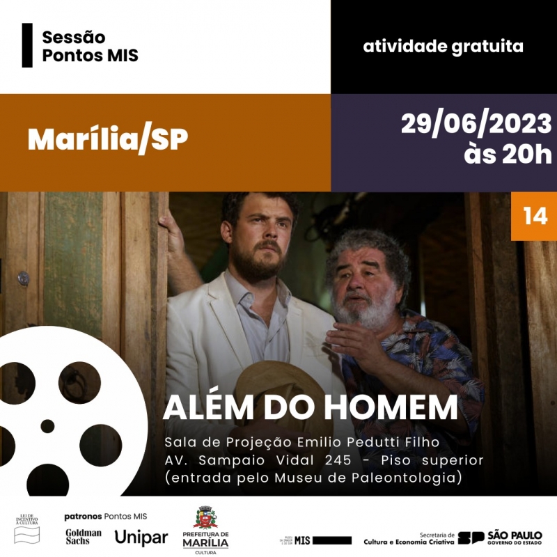 A sessão de cinema é promovida pelo Museu da Imagem e do Som, através dos Pontos MIS – programa de difusão audiovisual, em parceria com a Secretaria da Cultura de Marília.