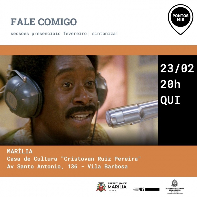 A sessão de cinema é realizada pelo Pontos MIS, programa de difusão audiovisual do Museu da Imagem e do Som, em parceria com a Secretaria da Cultura de Marília.