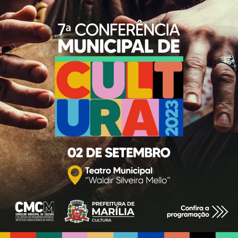 Programada para acontecer no próximo sábado, dia 2 de setembro de 2023, a segunda etapa da VII Conferência Municipal da Cultura de Marília terá como tema ‘Democracia e Direito à Cultura’, mesmo tema da 4ª Conferência Nacional de Cultura (CNC). A plenária será realizada a partir das 9 horas no Teatro Municipal ‘Waldir Silveira Mello’, com previsão de término às 17 horas. A programação incluirá credenciamento, café da manhã, apresentação musical ‘Chorinho Otávio Capriolli e Marcelo Beato’, mesa de debate ‘Democracia e Direito à Cultura’ e texto-base nacional e municipal, debate do plano municipal de Cultura e metas para o próximo biênio, coffee break, aprovação do relatório final da conferência, eleição dos delegados para a conferência estadual e encerramento com apresentação do rapper ‘O Mabeco’.