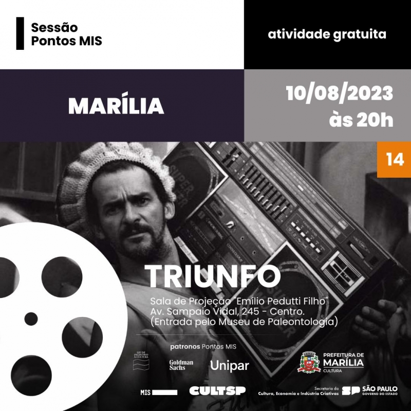 A sessão de cinema é promovida pelo Museu da Imagem e do Som, através dos Pontos MIS – programa de difusão audiovisual, em parceria com a Secretaria da Cultura de Marília.