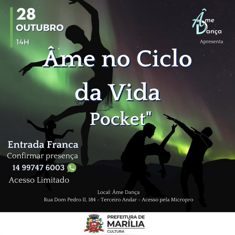 O Instituto Âme realizará neste sábado, 28 de outubro, às 14h, o espetáculo pocket ”Âme no Ciclo da Vida”. O evento é apoiado pela Secretaria da Cultura, por meio de Edital Municipal.