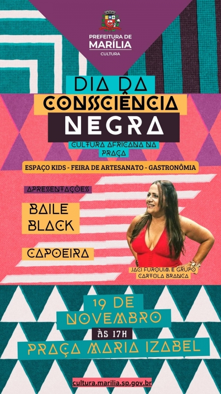 A Secretaria da Cultura realizará neste domingo, 19 de novembro, o evento “Grito da Consciência Negra”, na Pra Maria Izabel (ao lado da Igreja São Bento), à partir das 17h.